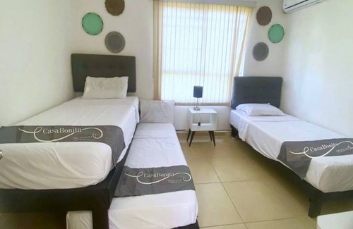 la Casa esta ubicada frente a la alberca y chapoteadero, tiene 3 habitaciones con aire acondicionado, 2 1/2 baños, sala, comedor, balcón, área de exterior con desayunador, cocina equipada, asador, esta ubicada en fraccionamiento residencial Real santa fe II, areas deportivas, canchas futbol, basquetbol y tenis, Ciclopista y palapas, en Xochitepec MorelosCasa Bonita offers outdoor pool, garden, 24-hour WiFi, garden views, balcony, terrace, sports areas, bike path, outdoor gymnasium, free parking