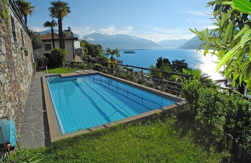 Lovely 1,5-room with balcony, sleeping gallery and swimming pool. Central and sunny location with great panoramic view of Lago Maggiore.