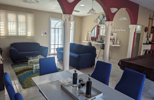 $$$ Send me a message for additional seasonal discount$$$...Beautiful Neo-Greek-style Tropical Escape. 20 mins to El Yunque National Park with its Majestic Vistas & Rejuvenating Rivers. 15 mins to Puerto Rico’s gorgeous sandy beaches. 20 mins to San Juan; Rich in its long history, Delicious food and its engaging nightlife filled with Music & Dancing. The entire home is gated for your safety & security. It is handicap accessible, A/C in every room, a private pool with waterfall feature & plenty of other amenities for your convenience & pleasure!