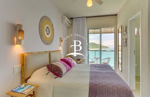 This exuberant seasonal accommodation with the travel agency AEA Boutique Travel, is located at the top of the hill where the island ends, being in this house is having the feeling of watching over the island of magic, with a unique view, as there is no other in Florianópolis with this architecture that allows you to be on top of the sea!