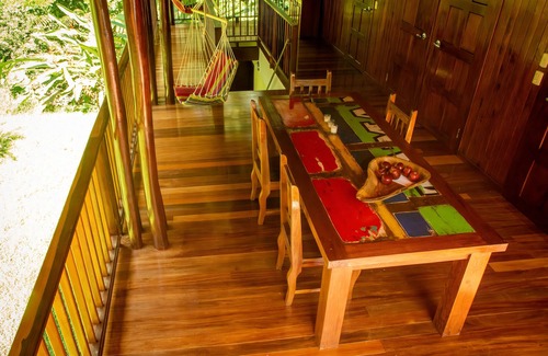 This gorgeous property is situated in an acre of lovely garden with big trees, lawns, and 3 ponds from which emanates an amazing chorus of frogs every evening. The land then extends back towards Corcovado with another 32 acres of rainforest, which has a huge range of mammals in (eg ocelot, puma, tayra, tapir). Sitting on the veranda, the rainforest is right there and there are often monkeys or birds to see moving about