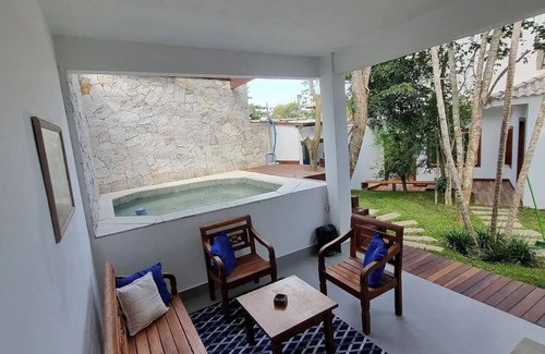 Located in Búzios, this welcoming vacation home brings it all within your reach. With the property's convenient onsite parking, you'll be ready to make the quick 5-minute drive to Rasa Beach or the 6-minute drive to Praia Baía Formosa.
