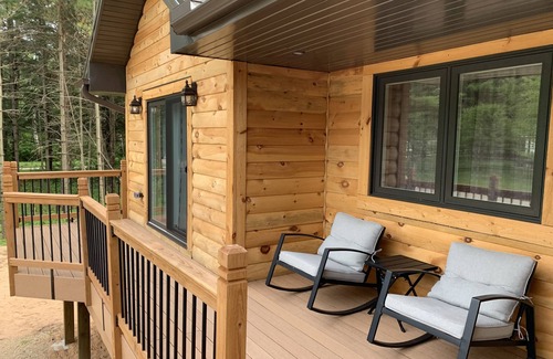 Begin your lakeside getaway at this newly custom built log cabin. 4- bedroom, 2-bathroom vacation rental home that sleeps up to 8. This spacious abode boasts an expansive front and back deck. Spend your days boating, fishing, kayaking and paddleboarding along the scenic shores of the shimmering lake. The beautifully manicured back yard boasts a modern fire pit for cozy evenings roasting s'mores while stargazing with your loved ones.