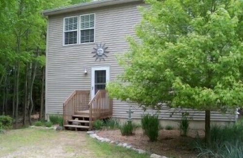 Cedar Point Cottage. Enjoy Michigan at it's best. Beautiful seclusion year around, enjoy nature and gorgeous Lake Michigan. Convenient, yet secluded, this three-bed room, two bath salt box cottage sits at the tip of Cedar Point. Right on Ridge Road, only a small wood lot separates you from the park staircase leading you down to 800 feet of private association Lake Michigan beach and to fabulous Lake Michigan sunsets. Built in 2003, the cottage has a stone fire place, and a large deck across the back that overlooks the wood lot and park, both of which buffer you from the neighbors. A bedroom that can sleep up to four is downstairs, as is one of the two bathrooms. Upstairs, an open loft sleeps two, and the upstairs bath, which separates the loft from the master bedroom, is accessible from both. A washer, dryer, ping pong, and foosball table greets you in the basement. Flat-screen TV's in the Livingroom and basement, along with wireless internet are also popular features!