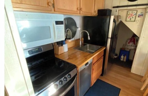 Up the stairs you will find a cozy sky lit loft with a single bed a small work area. We have a desk with a tv monitor/hdmi plug in that works perfect for any remote work you may need to take care of! In addition, we also have an arcade machine(free of charge) that has 10 different games on it for you or the kids to enjoy(Ms. Pac Man / Dig Dug / Rally X /Galaga / Etc)