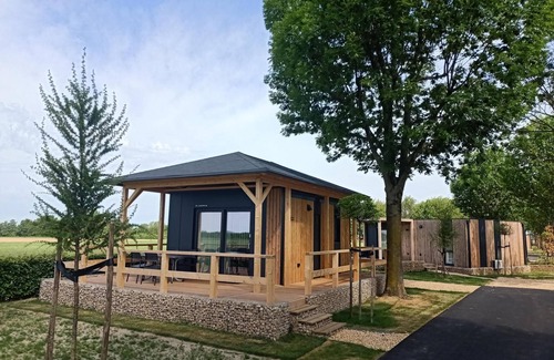 You can stay small and cosy in Tiny House 2. This cosy chalet is detached, single-storey and suitable for 2 people. The common room is furnished with a dining area and a small kitchen with a coffee maker, induction cooker and fridge, among other things. The bedroom is furnished with a double bed and the bathroom has a shower, washbasin and toilet. Outside there is a garden with a furnished terrace. You can park 1 car at Tiny House 2 and you can connect to the Wi-Fi for free.