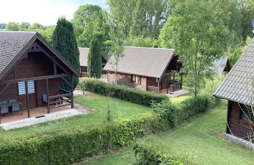 The Domaine de Guillaume located 15 minutes from Lisieux, is a village of 24 unusual chalets for 4, 6 or 8 people. each with its own private land of approximately 400 m², terrace and barbecue, as well as a shared swimming pool of 16 x 7 heated from mid-May to September, a children's playground, a pétanque court.