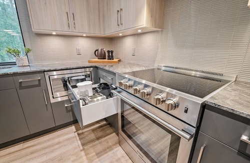 Immerse yourself in the tranquility of Wedge Mountain. This fully equipped Scandinavian cabin just North of Whistler village allows for access Whistler Blackcomb within minutes. Access world class hiking, mountain biking and skiing from your door step. Unwind after a long day of activities in the cedar barrel sauna to recharge and satiate your next adventure. Meticulously designed inside-out, this is not your average cabin including a private heated, EV equipped garage for all your gear.