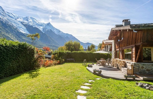 Chalet Martinique is a beautiful 3 bedroom chalet close to the centre of Chamonix. Perfect for a family looking for a luxury Chamonix chalet, the chalet is situated on the sunny side of the Chamonix valley just above the town centre and is less than 5 minutes' walk to the restaurants, shops and bars, but is also in a wonderfully quiet private area with uninterrupted views of Mont Blanc from the large, family-friendly garden. On the ground floor of Chalet Martinique, there is a spacious and light living room with large log fire and views looking onto the garden and up to Mont Blanc and the Aiguille du Midi, as well as a separate well-equipped kitchen and dining room with table and chairs for 8. You can access the garden directly from both the dining room / kitchen and from the living room.