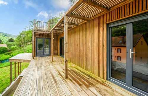 With a view of the mountain, the chalet Massassi Plaza with step-free interior in Cornimont is perfect for a relaxing holiday. The 45 m² property consists of a living room, a fully-equipped kitchen, 1 bedroom and 1 bathroom and can therefore accommodate 4 people. Additional amenities include high-speed Wi-Fi (suitable for video calls), a TV as well as air conditioning. This vacation rental offers a private outdoor space with a whirlpool, garden, open terrace, and covered terrace for your enjoyment.