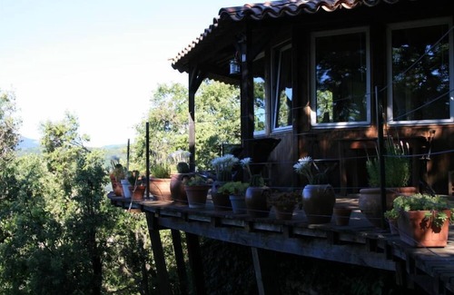 A small house in the trees, very quiet, superb view on 50 km of mountain in the big terrace. Near to the National Park of the Cévennes. Swimming pool to disposition (timetables according to previous understanding with owners). A very good to the meditation and rest in a total natural immersion. Artists, writers and especially nature lovers will be the welcome. Privileged stage for hikes on foot, to bicycle, VTT or motorcycle. Bikers welcome too, possibility to have a guide to visit the super roads of the Cévennes.