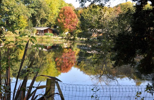 In the wooded park of 3 ha 28 cottages are scattered around a pond;