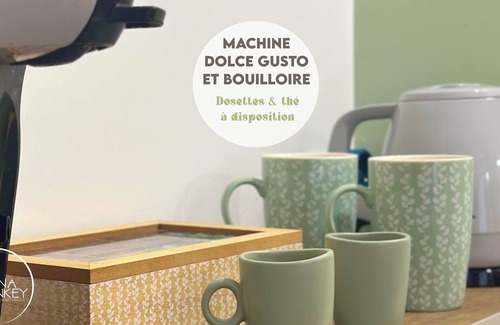 Séjournez dans une chambre originale et décorée avec goût en plein centre de Bourgoin Jallieu. L’accès est indépendant via une serrure connectée. La chambre est indépendante de la maison. Lit 140 avec matelas Bultex, Smart TV, un coin repas 2 personnes, 1 coiffeuse, une penderie, un coin café avec machine Dolce Gusto et dossettes offertes. La salle de bains spacieuse, un frigo, un micro ondes et un grille pain sont à disposition. 10min à pieds de la gare, 2 min de Leclerc et du centre ville.