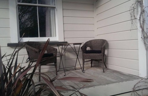 Early 1900s character cottage set in private garden, only a stone's throw from The Square. Fully refurbished, open plan with woodburner and polished floors. Both bedrooms, one Queen and one double, open onto the deck, which wraps around three sides of the house. A sun-drenched area with outside seating is a great spot for breakfast or a barbeque. Claw foot bath for relaxing or shower if you prefer. Supplies for continental breakfast provided.