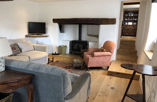 The cottage is about 200 - 300 years old. Originally two cottages, joined together by the previous owners. The older half, the southern end with a stable door has been a blacksmiths forge and a bakery in its history. Recently, the cottage has been renovated retaining a lot of charm, inglenook fireplace with a wood burner, exposed beams, wooden floors, window seats and an Everhot range cooker.
