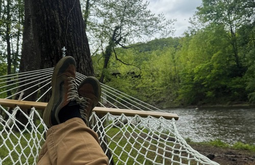 Take it easy at this unique and tranquil getaway. This cozy cottage has all the amenities you need to enjoy your visit. One bedroom and bathroom with a full kitchen and dining area, as well as a separate living room with a sleeper sofa. the kitchen is stocked with all of the essentials you’ll need to prepare a meal. Large deck out back to relax on and enjoy the views. Short walk to access Potts Creek on the property. Close to many outdoor activities, and local attractions.