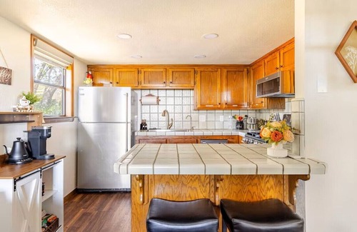Bluejay Bungalow is your home away from home. Whether you like visiting iconic Yosemite, hiking nearby trails, cuddling up with a good book, or relaxing on the quiet, tranquil porch, you will love what this cute cottage offers. Peaceful and secluded, it is nested within the Sierra Foothills, just 14 miles from the South gate of Yosemite National Park and minutes away from downtown Oakhurst and Bass Lake. This one-bedroom home is pet-friendly with strong Wi-Fi for a perfect stay at Yosemite!