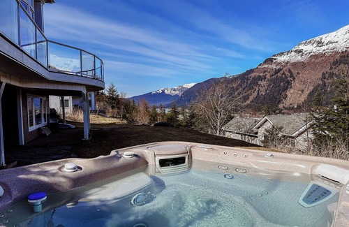 Enjoy stunning views of the Gastineau Channel, downtown Juneau, and Mt. Roberts from our 2-bedroom, 1-bath apartment. The fully stocked kitchen is perfect for any meal. Family-friendly amenities include a pack-and-play, highchair, and extra twin bed by request. Relax in the large hot tub or watch a movie in our private theater. Conveniently located near downtown Juneau, this apartment offers comfort and convenience for a memorable Alaskan stay.