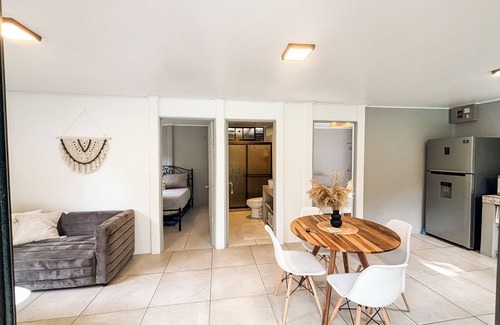 Escape to a charming two-bedroom cottage nestled in the heart of jungle, but only minutes to town. Surrounded by towering trees and vibrant fruit trees, you'll experience nature at its finest. Enjoy the peaceful ambiance, where the sounds of toucans and wildlife create a serene escape. Perfect for small families or friends, this cozy retreat offers all the essentials for a comfortable stay. Immerse yourself in the beauty and tranquility of the jungle while creating unforgettable memories.