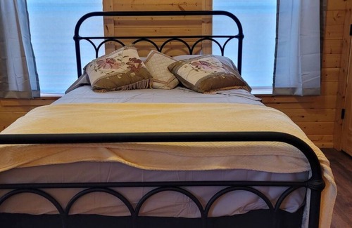 Nestled in Morgan Mills, this delightful cabin offers 2 cozy bedrooms with a queen bed and a full bed. With amenities like Wi-Fi, AC, and a washer and dryers. Guests can enjoy a soothing stay. The cabin also features 2 bathrooms with showers for added convenience. It's easy to see why you'll be able to unwind at our place. The living room and one bedroom has a TV. A hotspot is provided to allow internet access for use of your computers, cell phones as well as Live Television services. Large porches with overhead roofs allow families to enjoy spacious views of hills and woods surrounding the cabin. Ten acres surrounding the cabin creates a sense of privacy and security.