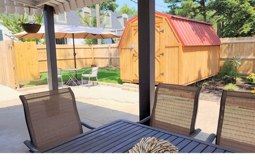 Our backyard offers a variety of spaces to relax and enjoy the outdoors. Lounge on the covered patio and enjoy meals at the 6-seater table. Bask in the simplicity of our rock garden, complete with seating. For grilling enthusiasts, we have a deck featuring both gas and charcoal grills. A privacy fence surrounds the backyard, ensuring you can enjoy your time in peace.