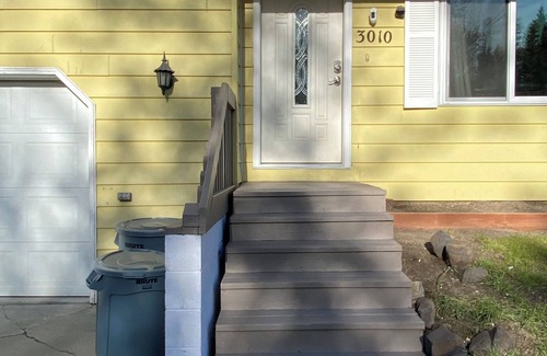 Escape to this lovely townhome in picturesque Fairbanks. Located in a central location within minutes from all Fairbanks activities and sites. With 2 queen beds in 2 cozy bedrooms and a charming living room with the ability to sleep 2 more, this delightful retreat offers a comfortable stay for guests. Enjoy the convenience of amenities like full kitchen, nice back deck, WiFi, washer and dryer, and a beautiful park across the street. The bathroom comes fully equipped with provided shampoo and conditioner as well as hair dryer. We'll be available to answer any questions while you stay at our place.