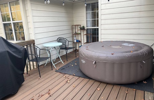 Your cozy getaway awaits, 15-minutes from the Masters at this adorable bungalow in Martinez. Grocery, beverage and convenience stores are a 5-minute drive, in addition to the wonderful dining options outside the neighborhood, in Evans, and downtown Augusta. Pet and family friendly, this 3 bedroom home features several amenities for relaxation and entertainment: primary en-suite bathroom with soaking tub, inflatable hot tub for 4, four-seasons room (a screened and carpeted patio), deck, infrared propane Char-Broil grill, fire pit area, fenced backyard, open-concept dining room, wood burning fire place, large video and board game collection, parlor, large (unheated) pool, and a smart TV in all bedrooms and living room. The kitchen is stocked with a wide range of cookware and popular appliances, double sink, microwave, dishwasher, fridge/freezer combo with ice maker and water, and an electric oven/stovetop. Friendly neighbors tucked into the woodsy neighborhood of Forest Creek. Backyard is fenced and features a creek and no rear neighbors. Double driveway and street parking.