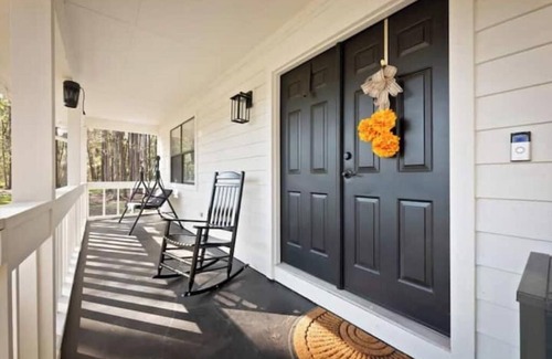 Relax at this peaceful, unique, private, centrally-located cozy home that sits on over an acre of property. You can recline on the front porch swing or rocker, or just lounge on the back patio deck. Pool also features a sun deck for lounging or eating with family. Centrally located to all. Shopping, restaurants and attractions only 20 minutes to the beach! The pool on the property. Depth is 3-9ft. We offer a discount when our front house is booked as well. Message for details.