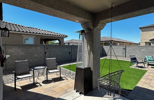Experience Goodyear like a local in this charming 3-bedroom house. With 1 king bed and 2 queen beds, guests will find a pleasant and quaint space to relax. Enjoy the convenience of WiFi, or some yoga in the loft with provided mats and light workout equipment or unwind with a book on the oversized couch. Downstairs there is a fully equipped game room with a poker/game table and plenty of games to enjoy. TV in living is a smart TV loaded with a firestick so you can easily access any of your favorites by logging in. Kitchen is completely stocked and there is a functional grill out back. It's easy to see why you'll be able to unwind at our place.