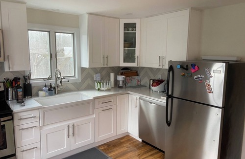 Your home away from home in Woodbury with 3 charming bedrooms. This welcoming house features 1 king bed and 2 queen beds, perfect for a cozy retreat. It’s in-law designed so it’s two homes connected to one another - that means two living rooms, two kitchens, two dining areas. Enjoy the smaller living room with a comfy sofa bed for extra guests and the larger living room next to a dining table that seats 10. With 4 bathrooms, 3 of which are equipped with a bathtub or shower, your stay will be convenient and relaxing. You're sure to make fantastic memories with a stay at our place.