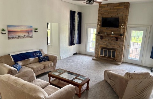 **Just renovated** Some black-out dates may be available. Message us your dates to inquire. Escape to our beautiful 4-bedroom farmhouse/chateau. This retreat is a perfect haven for families or groups, comfortably accommodating up to 11 guests. Combined with rustic charm, this spacious lodge sits among a working cattle ranch. This property boasts 4 bedrooms, including a king bed, bunk bed, and 3 queen beds. With 2 bathrooms equipped with showers and hair dryers, guests will feel right at home. Enjoy the serene surroundings and take advantage of the additional game room space equipped with a daybed. Step inside to discover an inviting open concept living room, large dining and fully equipped kitchen. Outside delight in your private oasis. Enjoy the seasonal pool (Memorial Day through Labor Day), relax on the porch and grill a meal to create memories together. Lake access (reserved for fishing only- catch & release) is about 400 feet away. Experience the perfect blend of adventure and tranquility among this working cattle farm. Furniture might be able to be arranged in bedrooms to accommodate your needs. Message us if this may be the case. Nearby attractions include the World Shooting and Recreational Complex just 20 miles away. St. Louis offers many family friendly activities and attractions with a 45 minute drive. Many local eats and treats include restaurants, bar & grill and fine dining experiences within 10 minutes of the property. Feel free to reach out to us during your stay - our welcome book suggests local spots to check out!