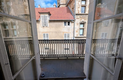 In the old Vesoul, a stone's throw from the St Georges Church, the Place du Palais de Justice, and the Georges Garret Museum, discover the riches of the historic center, the covered market, the shopping streets. To do: the lake and the Ludolac water park, the theater, cinema, bowling, bike-rail, karting... Festivals: Asian Cinemas, Jacques Brel festival... In the heart of the historic center of Vesoul, you stay in a beautiful apartment located on the first floor of an 18th century mansion: the Lyautey de Genevreuille hotel, listed as a Historic Monument, facing the Thomassin hotel, famous house of old Vesoul, for its magnificent facade. It includes: a living room, a bedroom (1 bed 120/190), a bedroom (1 bed 140/190), (a baby bed can be made available to you). Plenty of storage. A fully equipped kitchen. A bathroom - Wc. Private parking is available in the shared courtyard, enclosed by a wrought iron gate. For your convenience, bed linen and beds are made upon arrival. Utilities included. Fiber optic Wi-Fi internet access is available.