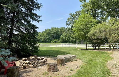 Our charming Bed & Breakfast is nestled on almost 9 quiet acres with amazing sunrises, sunsets, & gorgeous night sky! You are renting the entire house. There are 5 private suites with each having their own bathroom. Sleeps 10 with 2 in each suite. Bring your friends or family for a quiet getaway! You can add on extras from Charcuterie Boards to a massage during your stay. Two of our suites have private Hot Tubs, one has a steam shower, and all other suites have jacuzzi's. The Tree House has a full kitchen with private deck & entry. There is a state-sanctioned cornhole pit on the back patio with huge stone fire-pit. Life sized chess board in the front field. Want to explore? There are all kinds of things to do surrounding our area. Restaurants, Breweries, Wine Vineyards & Distilleries, Parks & Trails, Theaters, Festivals, Antiquing, and Museums. If you don’t want to rent the entire house-just send me a message, we’ll figure it out!