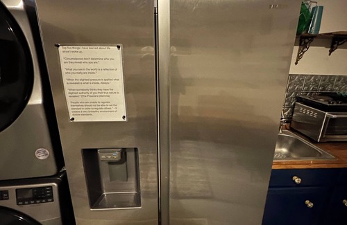This Kaufman building boasts 1 inviting bedroom. With amenities like a washing machine, heating, AC, and WiFi, guests can relax in the peaceful living room with a cozy sofa bed. Experience the magic of Kaufman at our tiny home.
