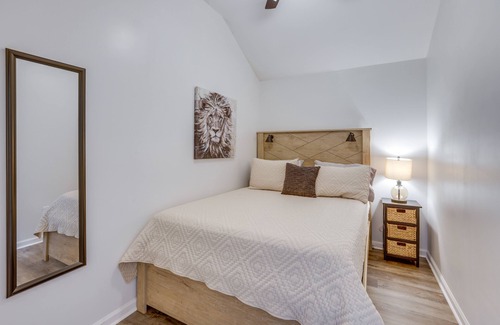 Your perfect nature escape awaits you at this bright and charming vacation rental in Shelby, Alabama. With a bedroom, a bonus sleeping room, a bathroom, and a well-stocked kitchenette, this vacation rental cottage offers all the comforts of home. Walk down to the convenient Waxahatchee Marina and cast a line. Don’t forget to hike through Beeswax Creek Park or Minooka Park as well! Later, sip a refreshing drink on the shared deck and curl up with a pet in the living room for a movie night.
