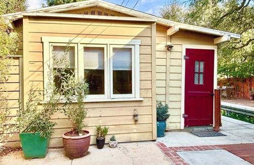 This Studio cottage in Pasadena is perfect for your escape. The bedroom features a soothing king bed with heavenly mattress, and the open space bathroom includes all essentials. With amenities like heating, WiFi, AC, coffee maker, and small fridge, guests can relax in this serene space. Enjoy your time in Pasadena at our cozy cottage.
