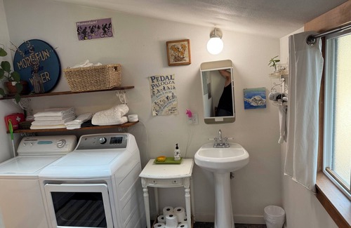 Your cozy getaway awaits in Portland at this funky cottage. This lovely retreat features a 660 sq ft studio with 1 queen bed and 1 sofa bed, perfect for up to 4 guests. Full kitchen. Full bathroom with tub and shower. Washer and dryer. Enjoy the convenience of a large workspace, WiFi, heating, and AC during your stay. The bathroom includes a bathtub & shower. Full kitchen with sink, stove, oven, fridge, microwave, coffee maker,etc. Walk to Woodlawn Coffee and Pastry, the Firehouse Restaurant, Breakside Brewery, Tamale Boy, Tough Luck Bar, Alberta Park and more. BIKETOWN public electric bike shareis just down the street. Rapid bus is a 3 minute walk away. 15 minute drive from the airport. Note: this is a larger than average studio cottage. So the bedroom is also open to the kitchen and living room. See pics.