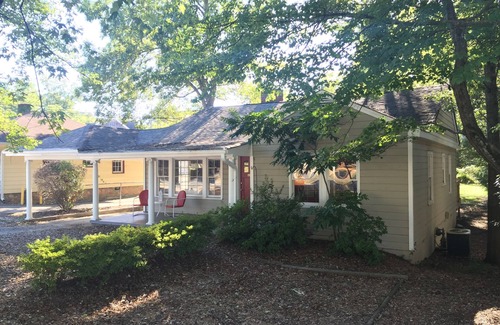 This designer decorated cottage is a great "home away from home" for anyone in town for business, weddings, family re-unions, house hunting, events, etc. It is comfortable and cozy and has lots of natural light. The large kitchen is fully equipped and has all new appliances. The living room has a big screen tv and each bedroom has a tv. The bedrooms have new comfortable beds and lots of closet space. We have covered parking (carport style) and a large backyard for extra parking. The house is surprisingly quiet for being right on Canton street. Sit on the front porch in the morning, sip your coffee and watch the traffic go by, or enjoy a glass of wine in the afternoon on the spacious deck out back.