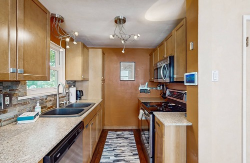 Welcome to your serene Seattle retreat! Nestled among lush organic gardens, this charming pet-friendly bungalow offers the perfect blend of comfort, style, and location. Ideal for couples, small families, or remote workers, the home features two cozy bedrooms—one with a queen bed and the other with a full—alongside a beautifully updated kitchen and spa-inspired bathroom.
