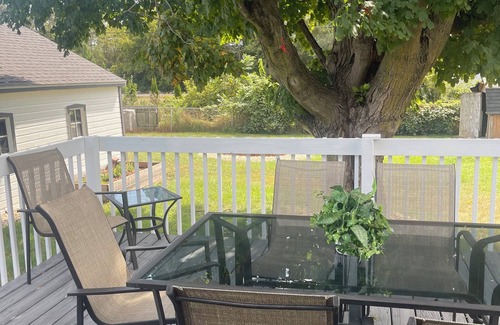 Get ready to relax in this Private 3-bedroom house in South Beloit. This delightful property features 2 king beds and 2 queen beds, perfect for a group getaway. With amenities like full kitchen, living room, fenced yard, pet friendly, a hair dryer, heating, AC, and an iron, guests will feel right at home. We're happy to assist with any questions while you stay at our house. Full kitchen gas stove, dishwasher, deck, fire pit in yard. Perfect room upstairs to seclude kids with two beds tv. Conveniently located on main road close to downtown Beloit's great dining, Beloit college, 20 min from Hard Rock Casino in Rockford IL. Antique mall right across the street. Farmers Market on Saturdays. Laundry across the street on the corner, Perfect for long term stays. Catch a Sky Carp Baseball game 1 mile away.