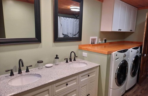 Come experience the charms of our 18th century family farmhouse, where old meets new to combine into a cozy weekend getaway, a week's vacation or staying for a season... or more. The charms of the original woodwork, slanted floors and crooked doorways meet the modern amenities included in the kitchen and bath remodels, where you will enjoy new cabinets, modern appliances and granite counters in the kitchen and dual sinks, tub/shower and washer & dryer with room to fold laundry in the bathroom. A large dining room easily seats six and the cozy living room consists of a large Roku smart tv with Spectrum wifi, a chofa lounge and 2 reclining chairs. The 1st floor bedroom has a queen bed, dresser, sitting area and smart tv. The entryway has room to store your skis, boots and poles, hang coats and store your shoes. All of this 1200 square feet is easily accessed on the main floor.