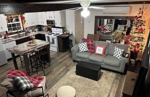 “Up the Creek” - This Laurel Springs farmhouse boasts 3 inviting bedrooms. Each room is thoughtfully designed to provide a serene and tranquil atmosphere for guests. With 2 full beds, 1 king bed, 1 queen bed, and 1 twin bed, there's plenty of space for everyone to unwind and recharge. The property also offers essential amenities like a washing machine & dryer, WiFi, AC/ heat, all your kitchen essentials and linens. The bathroom is equipped with a shower, towels and a hair dryer. A great place to call homebase while you're away! Relax or fish by the tranquil mountain creek or spend time at our pond centrally located on the property. We hope you enjoy your stay ‘Up the Creek’!