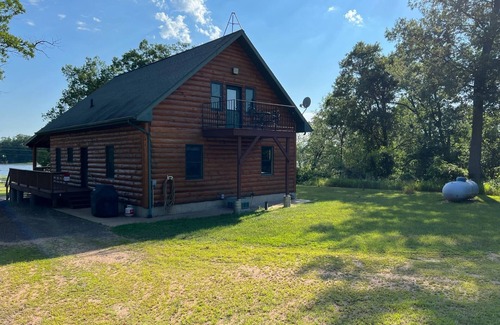 Enjoy a quiet, relaxing getaway at a cozy log cabin located in Webster, Wisconsin. It was built around 2000 by family to be enjoyed and now turned rental for others to enjoy. If you love the outdoors, this would be the perfect vacation rental for you. The cabin sits on a hill with a huge covered porch overlooking Pine Lake. A great spot to enjoy your sunrises with coffee, eat your meals, and watch the sunset with your favorite people during the warm weathered months. There is also yard for any activities along with a nice fire pit to enjoy your evenings by. During the cold weathered months, you can stay inside by the fireplace and enjoy Netflix, play games, cook meals with your favorite people in an open common area. For the outdoorsy folks, there is lots snowmobile trails around the area with access to a trail at the cabin, it’s the perfect spot to stay for your trip.