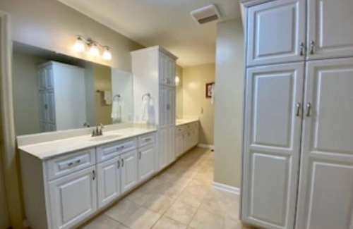 This smoke free/pet free ranch style 2500 sf home is located in a quiet well-established neighborhood. Simple accommodations to meet your getaway needs. It is close to the Augusta National Golf Course with Uber and Lift available. This home features 3 bedrooms and 2 baths. Master bedroom has king sized bed and wall mounted 52” high-definition television. Attached to the master is a renovated master bath featuring a large walk-in shower and double sinks. One of the additional bedrooms has a queen bed and 50” HD television in room. The other guest bedroom has a full-size bed. In the hall (common) bathroom, it has a single sink surrounded by a large countertop. It also has a tub with shower. Ceiling fans in all bedrooms. A fully stocked kitchen with modern appliances and cozy breakfast area. Smart TV in Living Area. WIFI available. Plenty of parking space for multiple cars. Bring your K-cups for Coffee on the porch in the morning or anytime. Covered porch patio. Grocery stores, shopping, restaurants and entertainment are found easily ½ mile from the house. Get away from it all in the large fenced in back yard that's great for playing Frisbee and other yard games. You can sit on the comfortable outdoor seating to watch TV or warm up on the cool nights around the Chiminea fireplace. Just minutes to I-20.