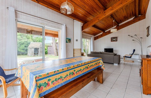 REF 300PIN - Pleasant detached house with large garden. Equipped kitchen, fridge, microwave, oven, gas burners. Living room, dining room opening onto a large covered terrace with barbecue and the garden at the back of the house. 2 bedrooms, one with a 140 cm bed and a 90 cm bed. The other with a 140 cm bed.