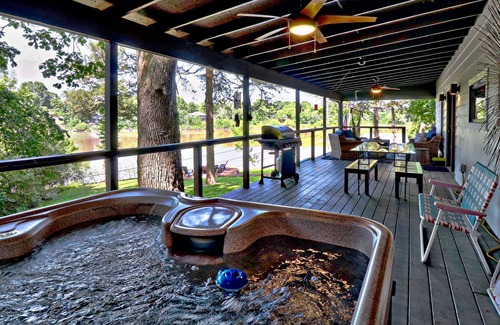Take it easy at this unique and tranquil getaway in Fayetteville. Beautiful home secluded in nature. Located waterfront with hot tub, patio and outdoor fire pit, Canoe/kayaks/paddleboard available for use. Plenty of waterfront yard space for outdoor games and hang out. Covered 40ft deck for outdoor dining, hot tub, and lounging by the fire. It’s perfect for friends/families, and staycations! 30 min drive to UofA