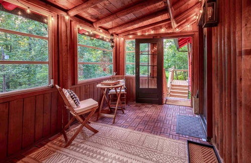 Applemoon is a dog-friendly 1960s log cabin nestled on an acre of the Blue Ridge Mountains. Two bedrooms with Smart TVs, a porch with hanging daybed and bistro table, and a cozy game loft will give you plenty of space to relax. Outside, enjoy dinner on the huge deck or build a fire and don't forget to look up at the night sky!
