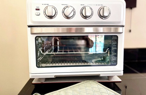 A kitchenette with a dining table equipped with a small fridge/freezer, air fryer/toaster, microwave, Nespresso coffee machine and tea station is available. There is also a desk space with an office chair as well as a 50 inches smart TV.