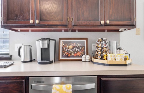 This beautifully updated & interior designer decorated home is situated in a popular & convenient South Tulsa neighborhood. This lovely, cozy home boasts 3 inviting bedrooms, including a private Primary Suite with King bed & spacious private bath, a second king suite & queen bedroom suite which are down a private hallway & share a full bath. You will find 2 spacious living areas each with a gas log fireplace, lovely large dining area & updated kitchen with center island snack/prep counter perfect for gathering your family & friends. The primary suite is off the back living area & boasts a huge private bath with jetted tub & separate showers with his/hers sinks & closets - luggage racks in each bedroom plus hangers in closets. The two spacious guest suites are located down a private hallway off the front living room and host cozy spaces, luxury bedding & large closets. Also conveniently located near the laundry room, the guests share a large full bath stocked with hair dryer, soaps, shampoo/conditioners, & plenty of fresh towels. The front living area hosts a piano, large screen smart TV, gas fireplace, reading nook & game table. The fully stocked kitchen is open in the vaulted living space with all cooking utensils & amenities including fridge, microwave, stove/cooktop, Kuerig coffee & electric hot water pot, all the pots & pans needed, plus serveware for hosting. Coffee mugs, wine glasses, whiskey tumblers and such will keep your guests & families happy during your stay. NEW Central HVAC & hot water tank, new washer & dryer, plus fully remodeled finishes with WiFi included. Whether you're needing a short stay or to book a long-term lease or insurance-related housing, we are experienced in meeting the needs of our guests! OR a perfect weekend getaway & an amazing retreat, this enchanting property is the perfect choice for your next vacation. We'll be available to answer any questions while you stay at our place.