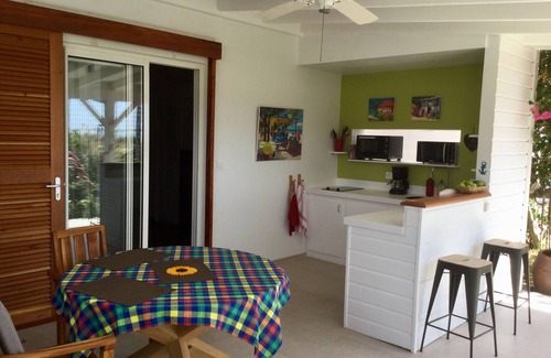 It is connected to our house but has its own entrance. You will enjoy the wide terrace in the tropical garden and the stunning ocean view of Orient Beach and Green Caye island. Another asset is the privacy and quietness of this charming place.